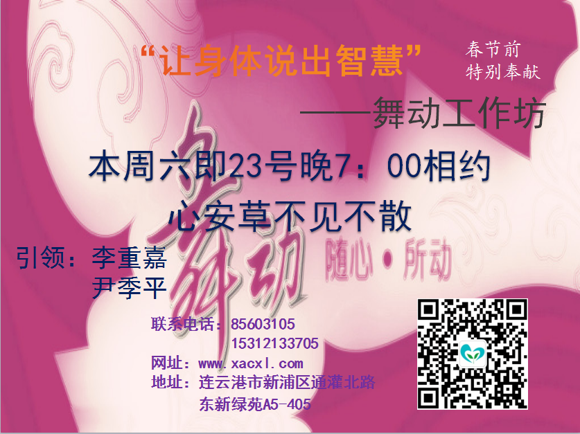 通知:本周六晚7时相约心安草舞动工作坊!